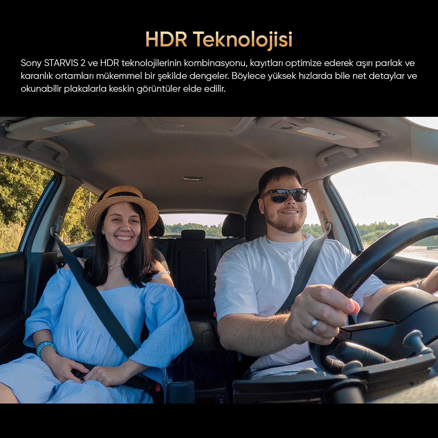 Kızılötesi LED'ler sayesinde gece çekimlerinde bile kabin içi tamamen aydınlatılır. 2K çözünürlük ve Sony STARVIS 2 sensör ile birleştiğinde karanlıkta bile yüz ifadeleri, kıyafet detayları ve araç içi hareketler net bir şekilde kaydedilir.