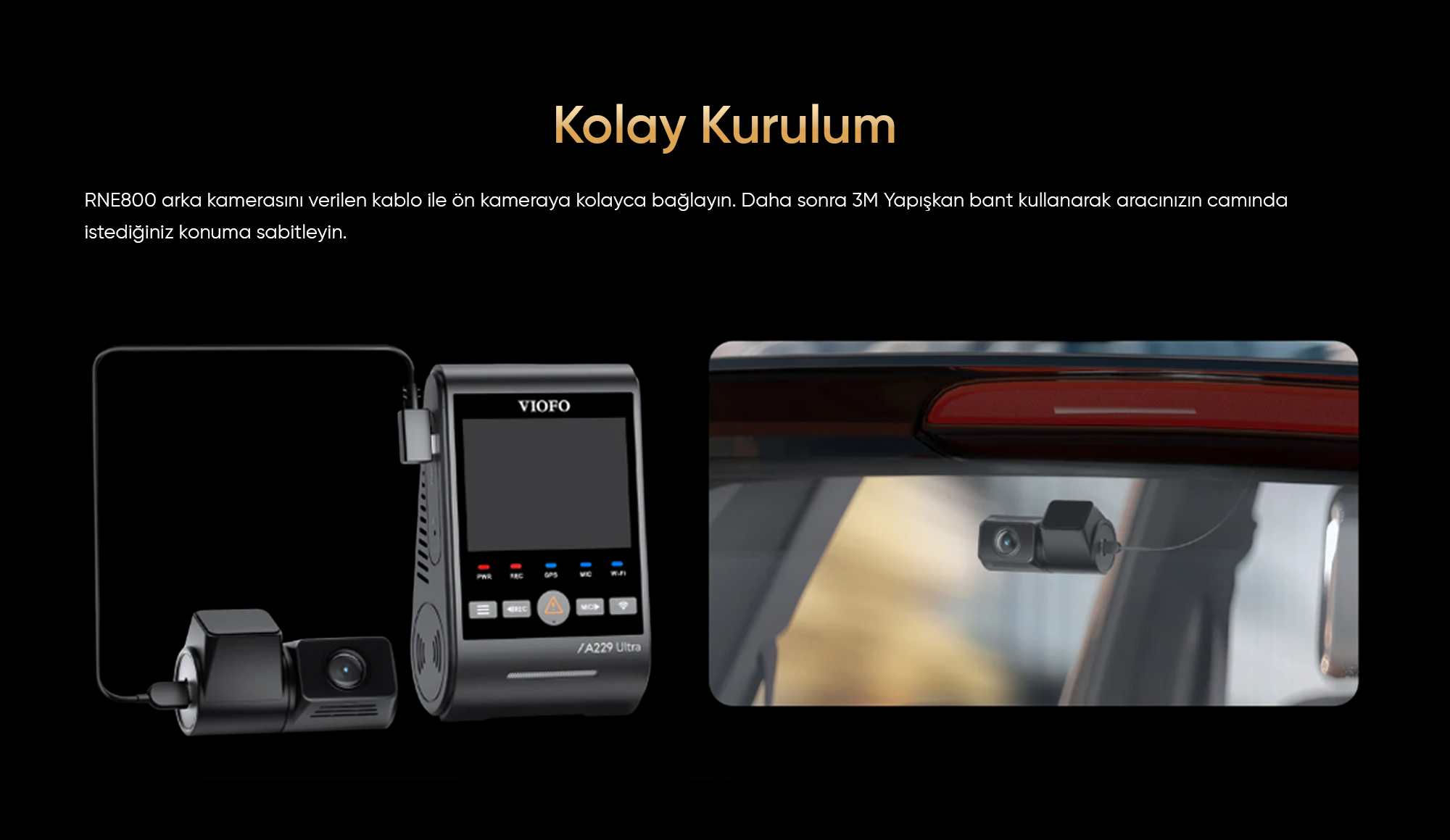Kurulum oldukça basittir. Kameralı kablo, özel olarak tasarlanmış ince konektörler ile A229 Ultra serisi araç kameralarına kolayca bağlanır. Pakette bulunan 3M yapışkan bant ile farklı montaj yüzeylerine uyum sağlaması mümkün olur. Detaylı kurulum kılavuzu ile adım adım talimatlar mevcuttur.