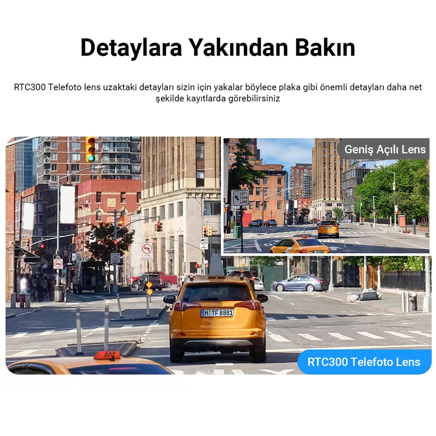 Viofo RTC300 A229 Pro / Plus Uyumlu 2K / 30Hz Telefoto Kamera, geniş açılı kamera lenslerinin aksine daha kısıtlı bir alanı 2K / 60Hz çözünürlükte STARVIS 2 IMX675 sensörü ile kusursuz şekilde kaydeder böylece çekim yapılan alandaki plaka gibi önemli detayları en net şekilde kayıt altına alır. İçinde bulunan HDR teknolojisi sayesinde karanlık ve fazla aydınlık ortamlar için ışık dengesini en iyi hale getirerek kaliteyi arttırır. Güneş yansımalarını önlemek için harici olarak CPL filtre satın alabilirsiniz RTC300 ile CPL-500 tamamen uyumludur. Ön kamera üzerindeki arka kamera için ayrılan boşluğa bağlantı sağlanması gerektiği için arka kameranız varsa kullanamayacağınızı unutmayın. Kamera üstüne yapışık gelen 3M bant ile ön kameranızın yanına kolayca kurulum yapabilirsiniz.