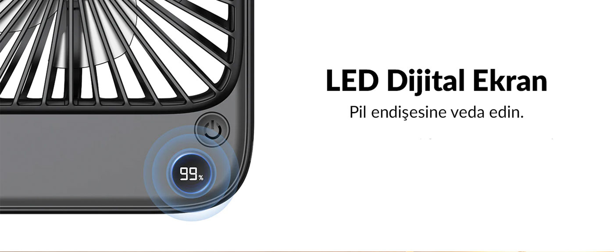 1 x Warmco D2 5000mAh Şarjlı Masaüstü Vantilatör Dijital Göstergeli Taşınabilir Ultra İnce Soğutucu Fan
