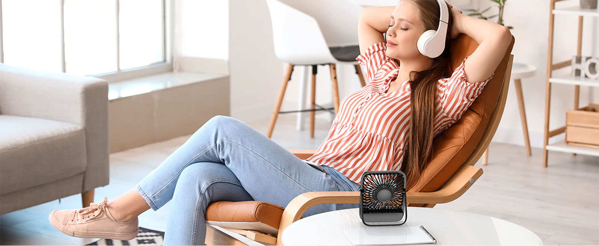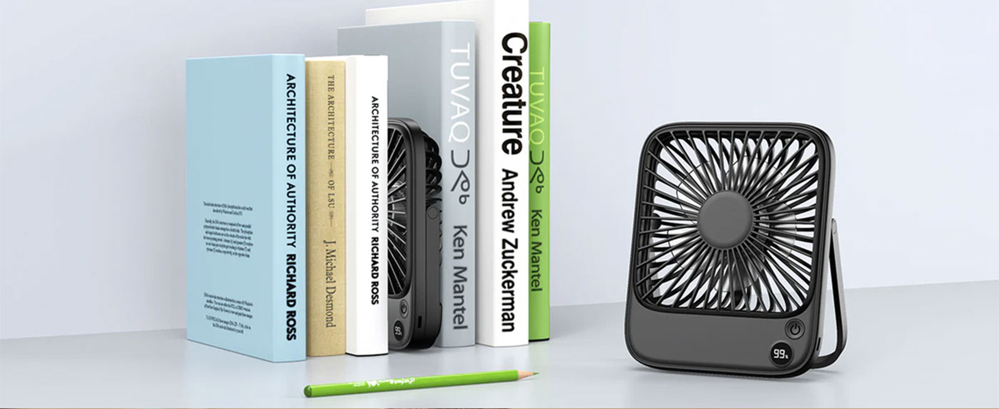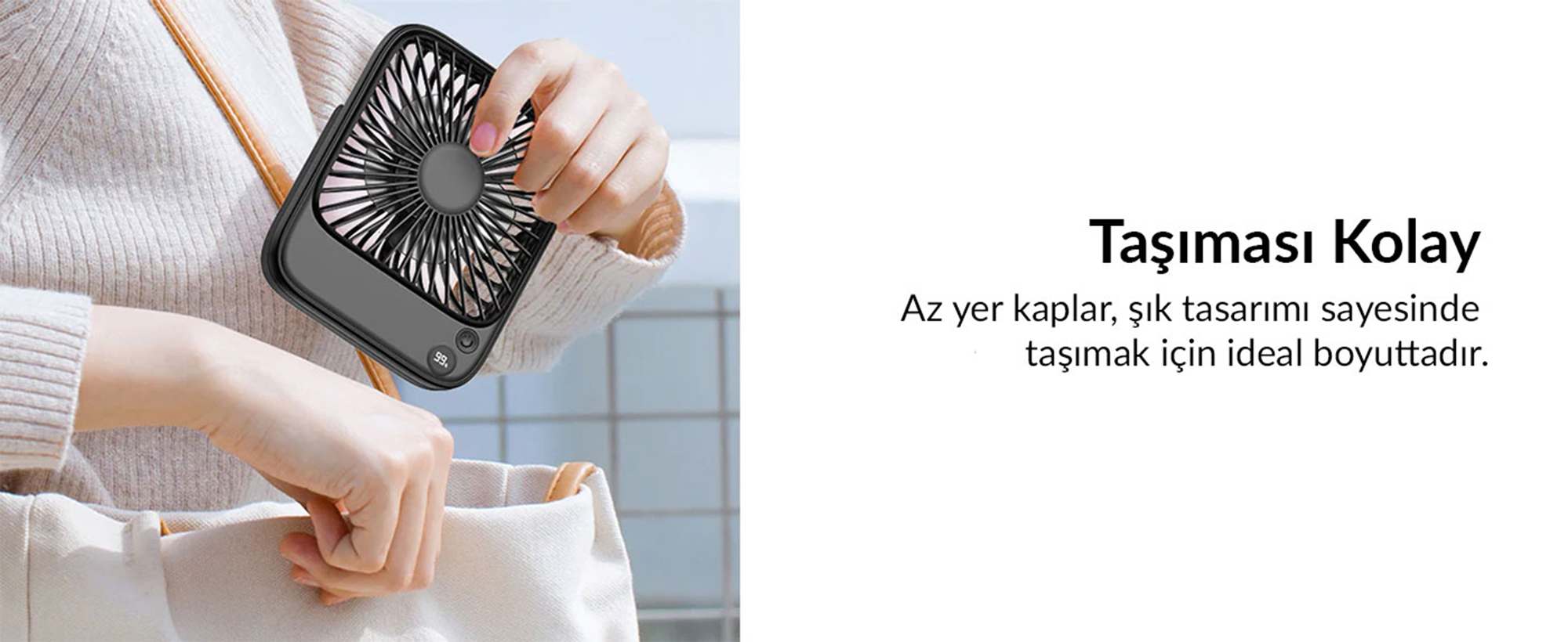 "Ultra-thin" kasa tasarımı sayesinde çalışma masanızda yer kaplamaz. Vantilatörün arka kısmında bulunan U şeklindeki stand, 180 derece açıyla ayarlanabilir. Bu sayede rüzgarın geliş açısını kendi oturuş pozisyonunuza göre ince bir şekilde ayarlayabilir, cihazı kullanılmadığında tamamen katlayarak çekmecenize kaldırabilirsiniz.