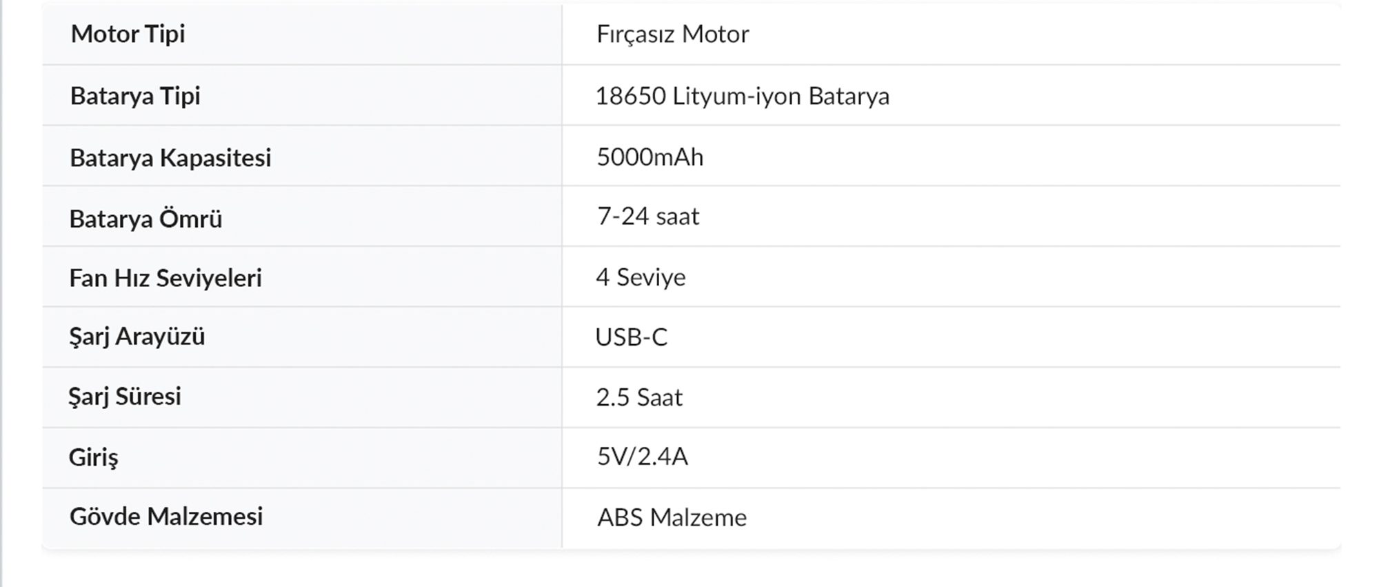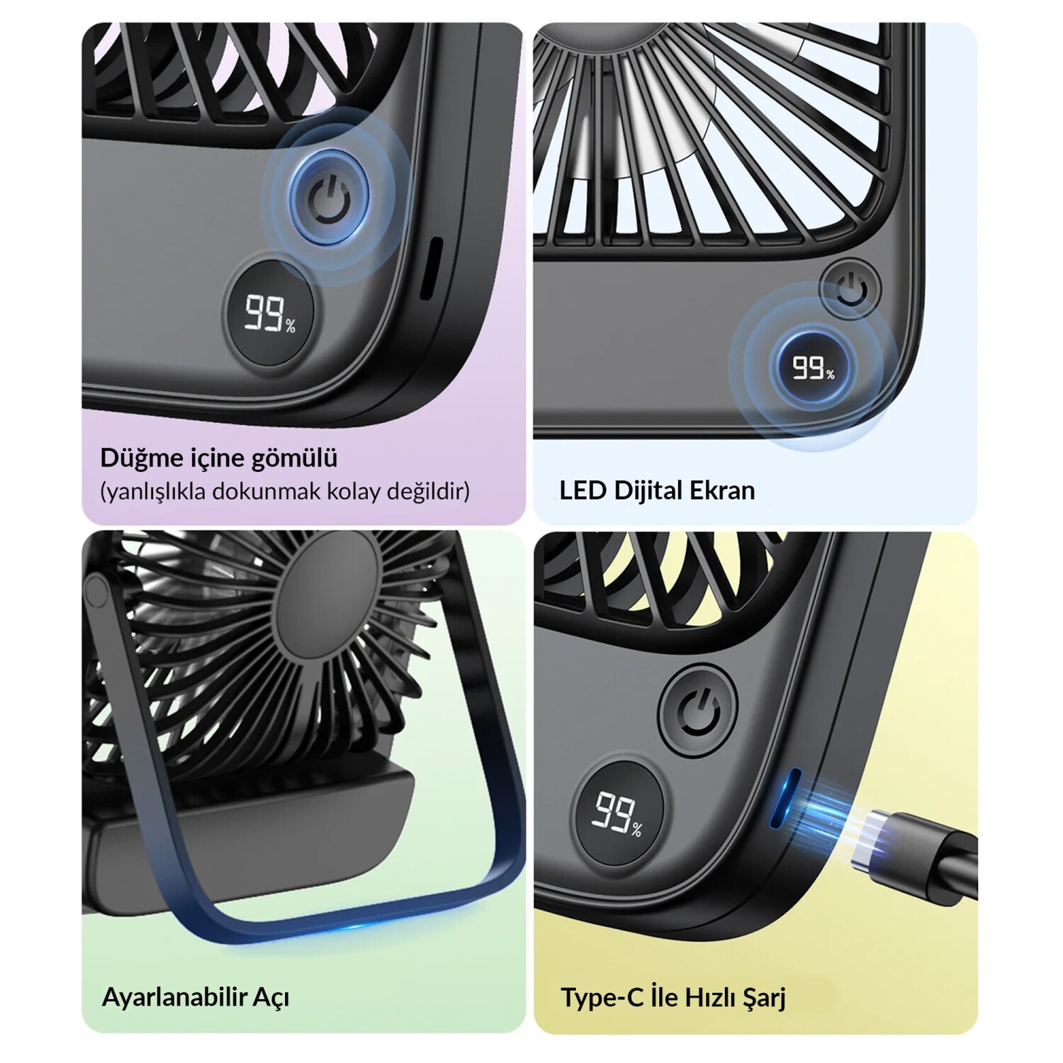 Hız Kademesi: 4 Farklı Hız Ayarı (1-4 Arası ayarlanabilir rüzgar)