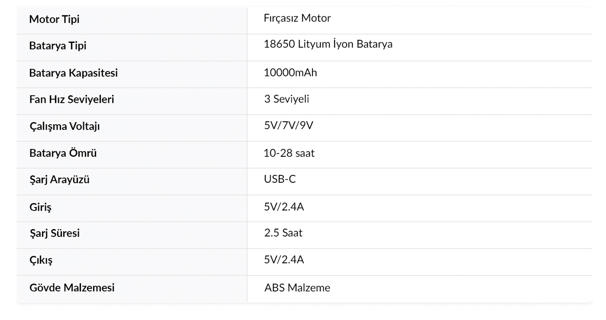 Şarj Girişi (Input): 5V == 2.4A (Type-C)
