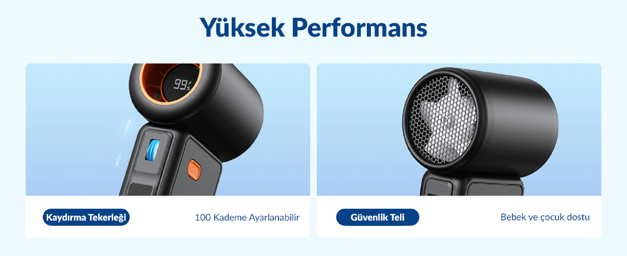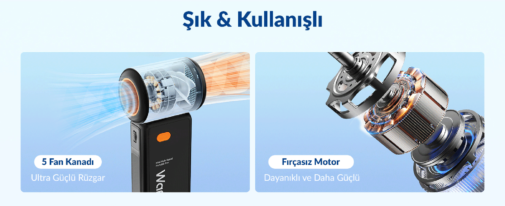 Kullanım: Güç tuşuna uzun basarak açma/kapama, tekerlek ile hız ayarı