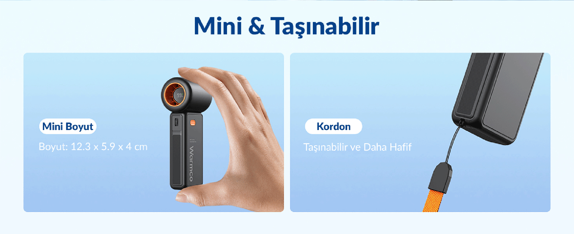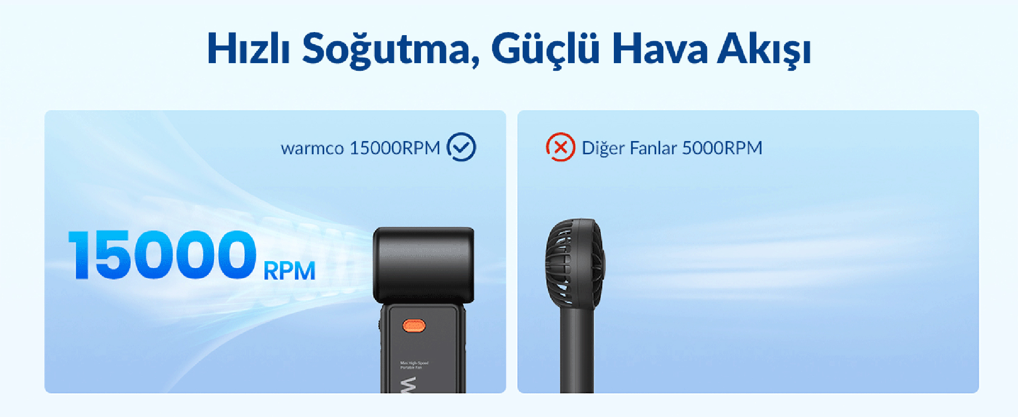 1 x Warmco H1 15000 RPM Turbo El Vantilatörü 5000 mAh Şarjlı Dijital Göstergeli Mini Soğutucu Fan
