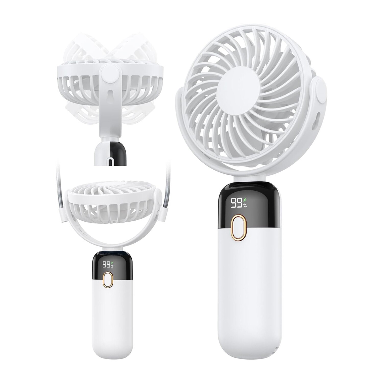 1 x Warmco K70 Taşınabilir Şarjlı El Vantilatörü 2400mAh 360° Döner Başlıklı ve Standlı Dijital Ekranlı Soğutucu Fan