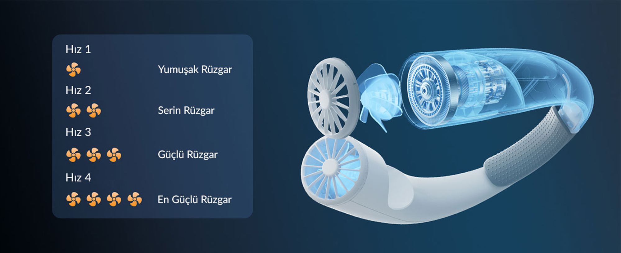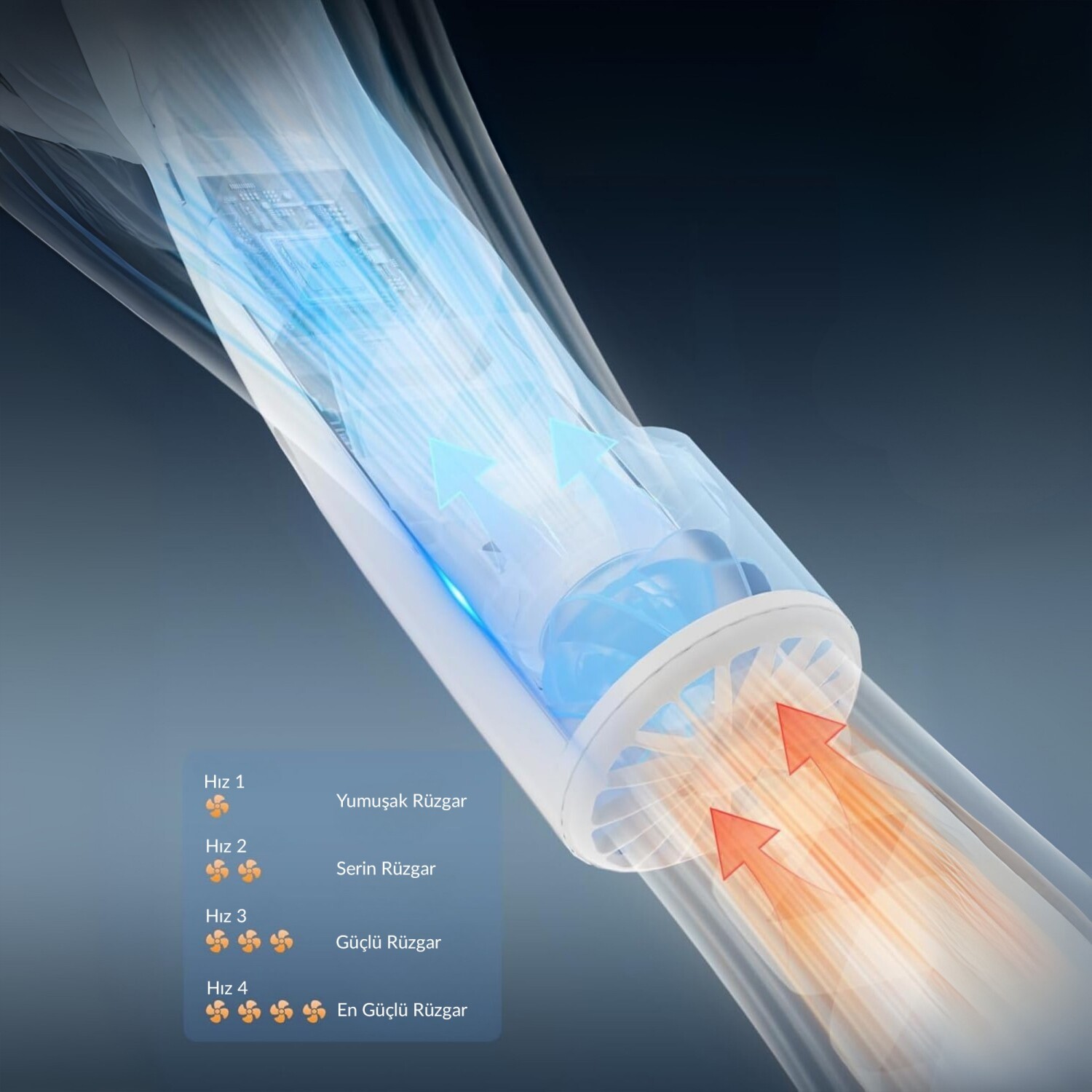 Hız Kademesi: 4 Farklı Hız Ayarı (Düşük / Orta / Yüksek / Güçlü)