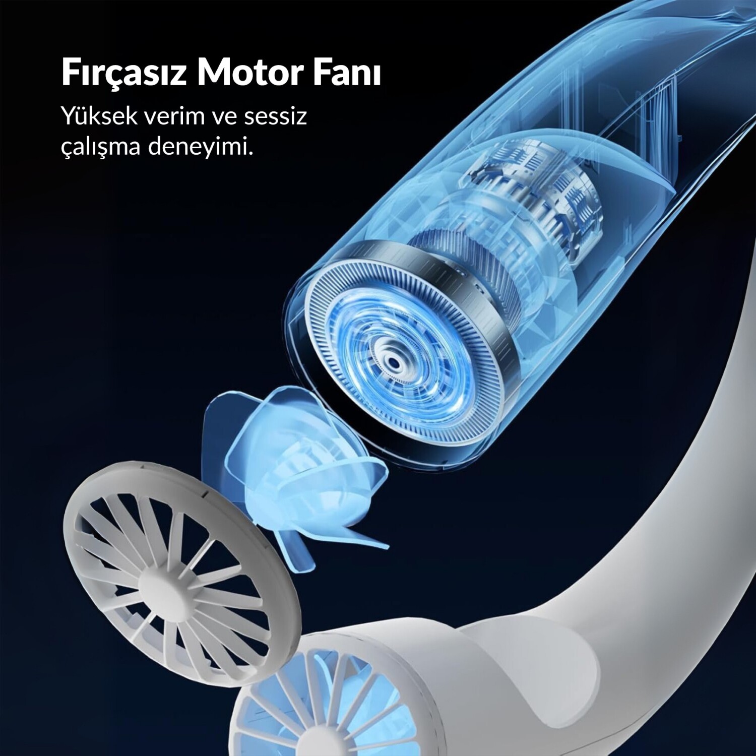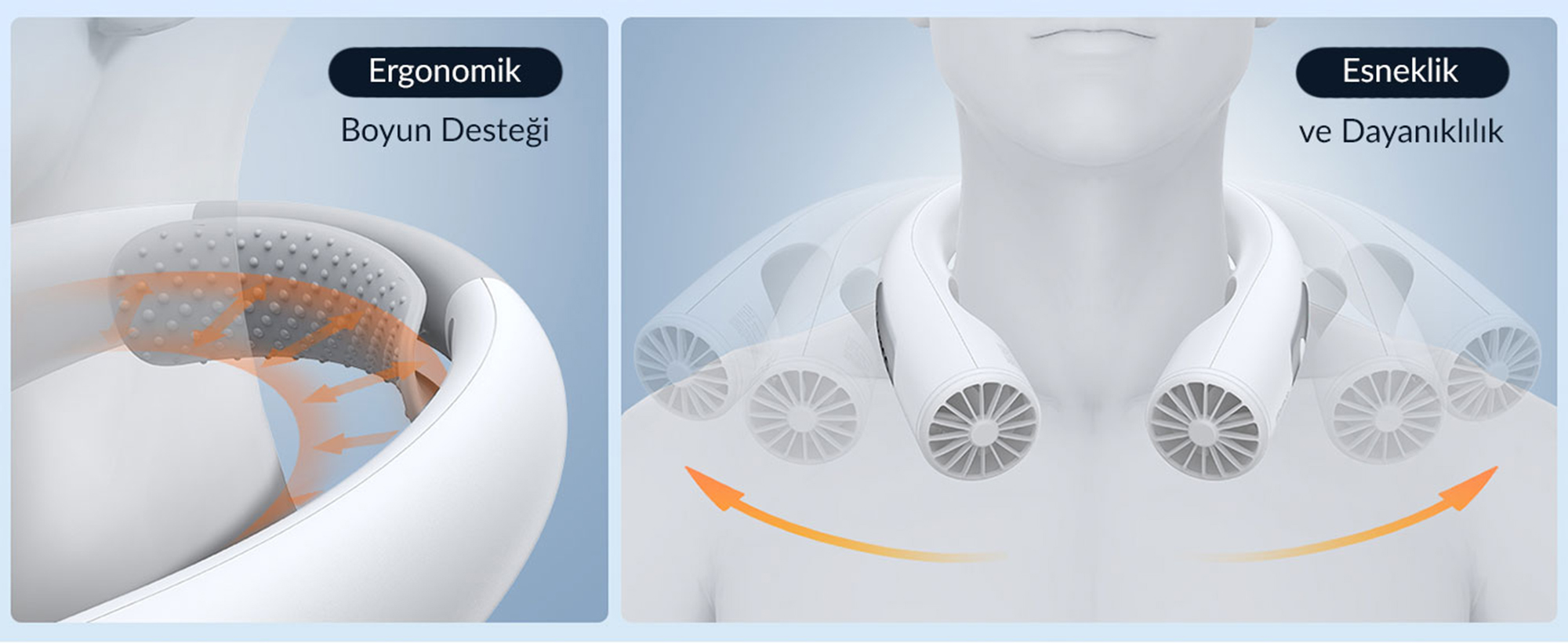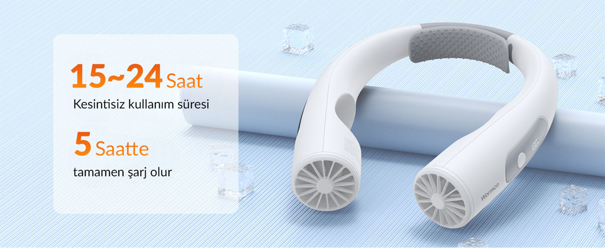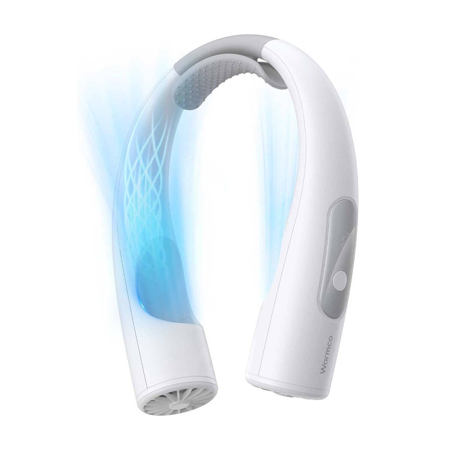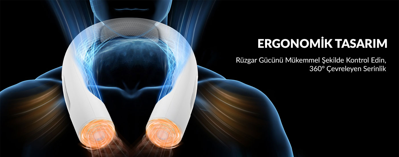 Sürekli elinizde bir vantilatör taşımak veya onu koyacak bir yer aramak zorunda değilsiniz. Warmco N1, tıpkı bir kulaklık gibi boynunuza asılarak (hands-free) kullanılır. Ense kısmına denk gelen iç yüzeyinde, terlemeyi ve kaymayı önleyen özel "Silikon Yastık" (Silicone Cushion) bulunur. Bu sayede cihaz boynunuza mükemmel uyum sağlar, hareket halindeyken bile sabit kalır ve cildinizi tahriş etmeden güvenli bir kullanım sunar.